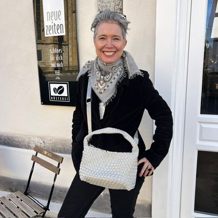 - läßt sich so gut tragen, als cross body bag oder einfach an der Hand