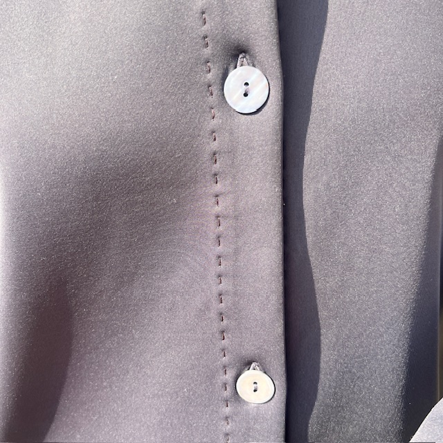 Klassischer Kragen, durchgehende Knopfleiste, entspannter Schnitt, der Figur zeigt ohne einzuengen.