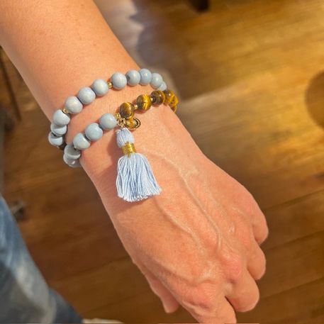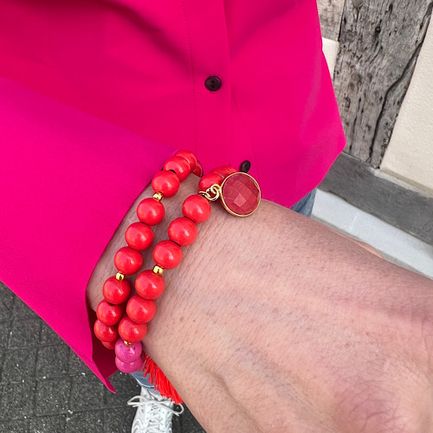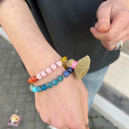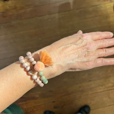 – doppeltes, elastisches Armband mit Quaste und Pompom