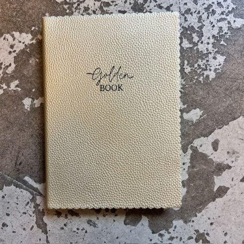 - Veganes Soft-Cover mit silbernem Print und Keksrand